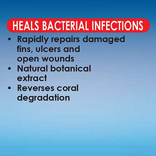 - Heals bacterial infections and repairs damaged fins, ulcers and open wounds